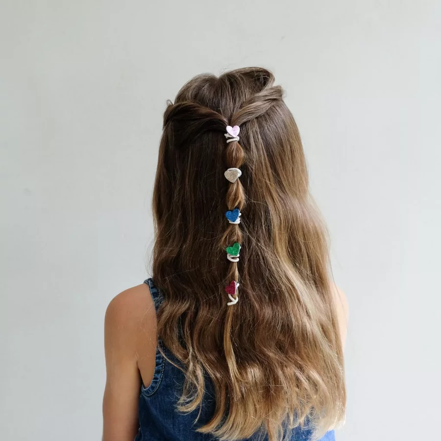 Vidám csillogást csempésznek a mindennapokba ezek a színes szívecskés hajgumik! A csillámos és metálos anyagokból készült szívecskék játékos és stílusos kiegészítői minden frizurának. Praktikusak a hétköznapokra, mégis elég különlegesek ahhoz, hogy ünnepi alkalmakhoz is tökéletesek legyenek.