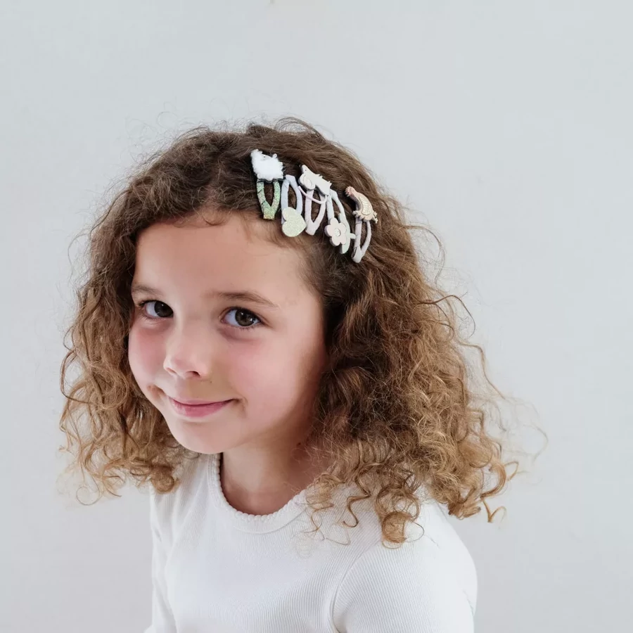 Vidám falusi hangulatot varázsolnak a frizurába ezek a játékos hajcsatok! A szettben egy csibe, egy bárányka, egy egérke, egy szív és egy virág motívum kapott helyet, így garantáltan mosolyt csalnak mindenki arcára. Tökéletes választás a hétköznapok feldobására, de ajándéknak is bájos kiegészítő.
