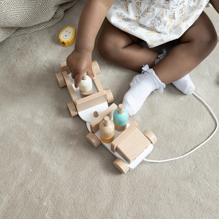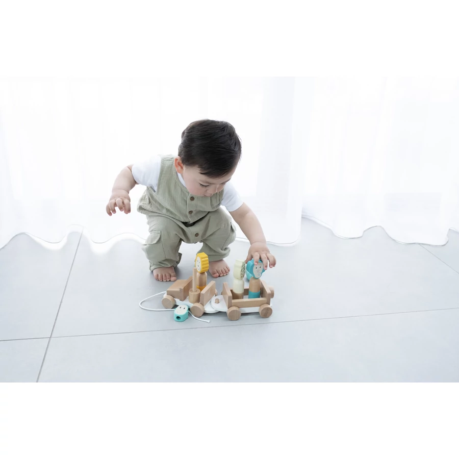 Indulat az állati kaland a szafari dzsippel? Ez a fából készült játék fejleszti a babád finommotorikus készséget és kéz-szem koordinációját. Emellett megtanulja, hogyan rakjon egymásra különböző tárgyakat, miközben játékosan tanulhatja meg az állatok nevét. A pamutzsinór segítségével nemcsak a szafarin, hanem a nappalin is keresztülgurulhat a dzsip – és akár az egész lakáson is! A játék bükkfából készül, méregmentes, vízbázisú festék adja a színét. 18 hónapos kortól ajánljuk.