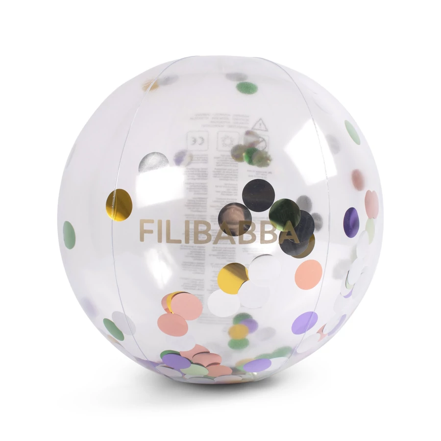 A Filibabba Rainbow Reef Confetti strandlabdájában csodálatosan csillogó, színes konfettik mozognak, minden szemet vonz majd ez a különleges strandjáték! A labdát csikóhalak és az óceáni élővilág díszíti, a gyerekeket elbűvöli ez a csodás gömb, melyet megemelni is könnyű és szívesen kipróbálják azt is, milyen a vízen hajtani!